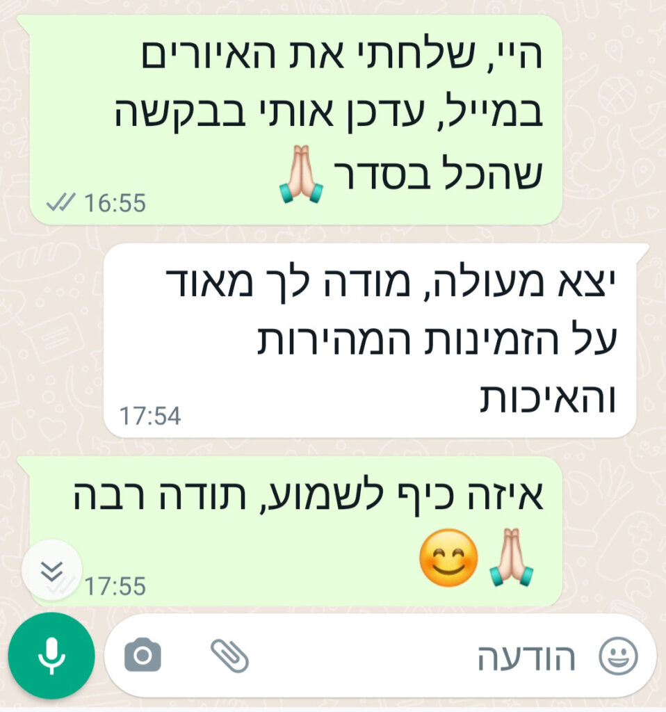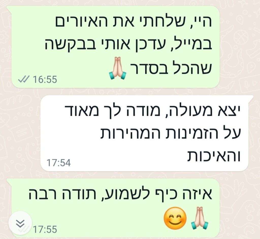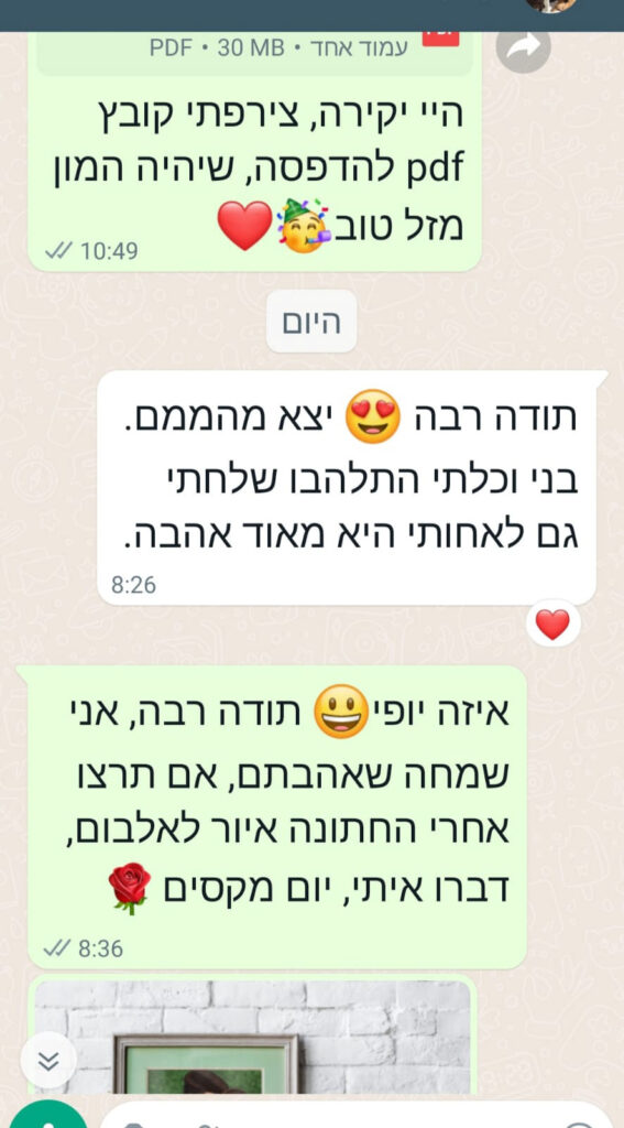 כל תהליך מתחיל בהקשבה לצורך שלכם ומסתיים בתוצאה מרגשת ומדויקת.