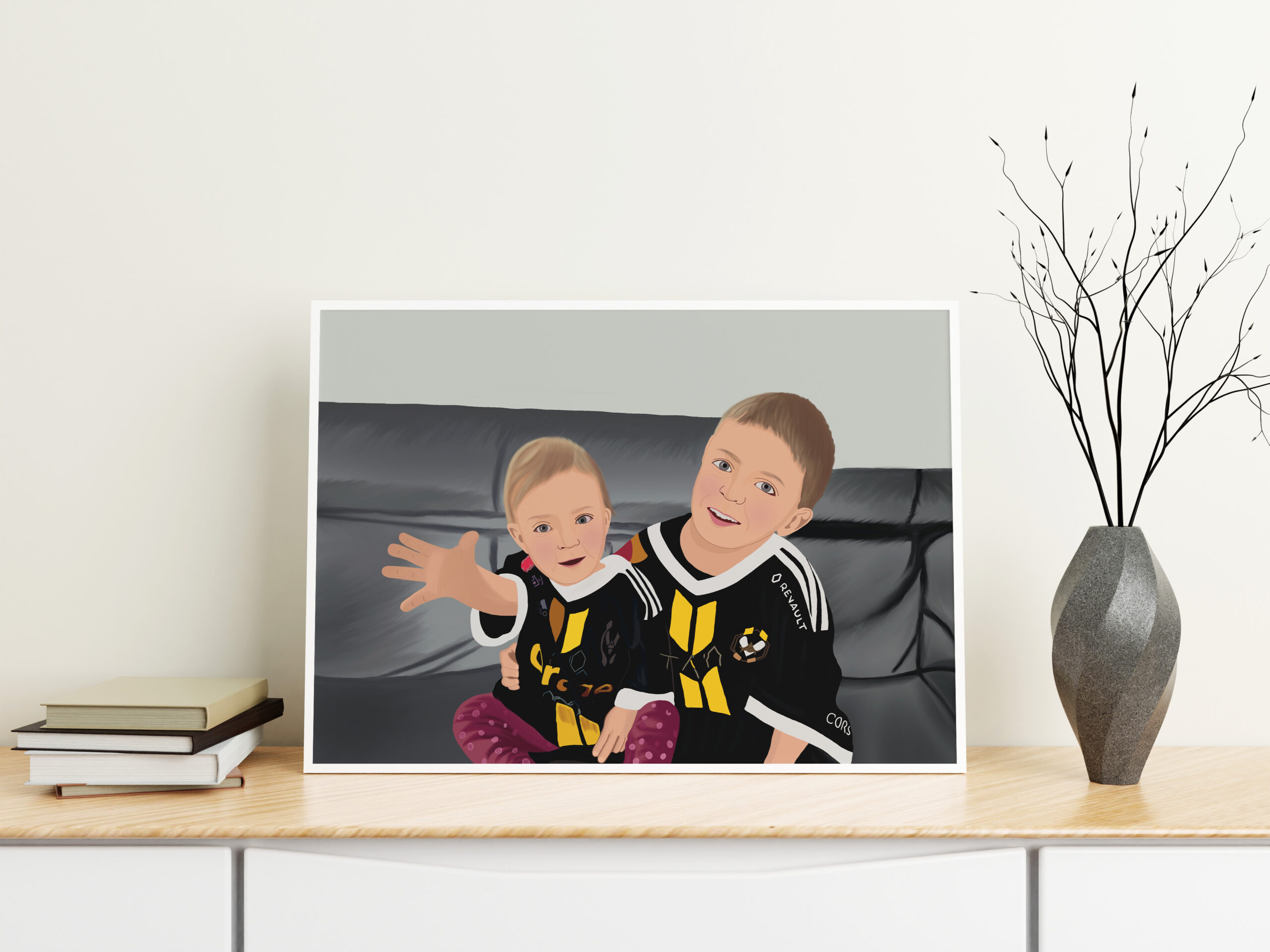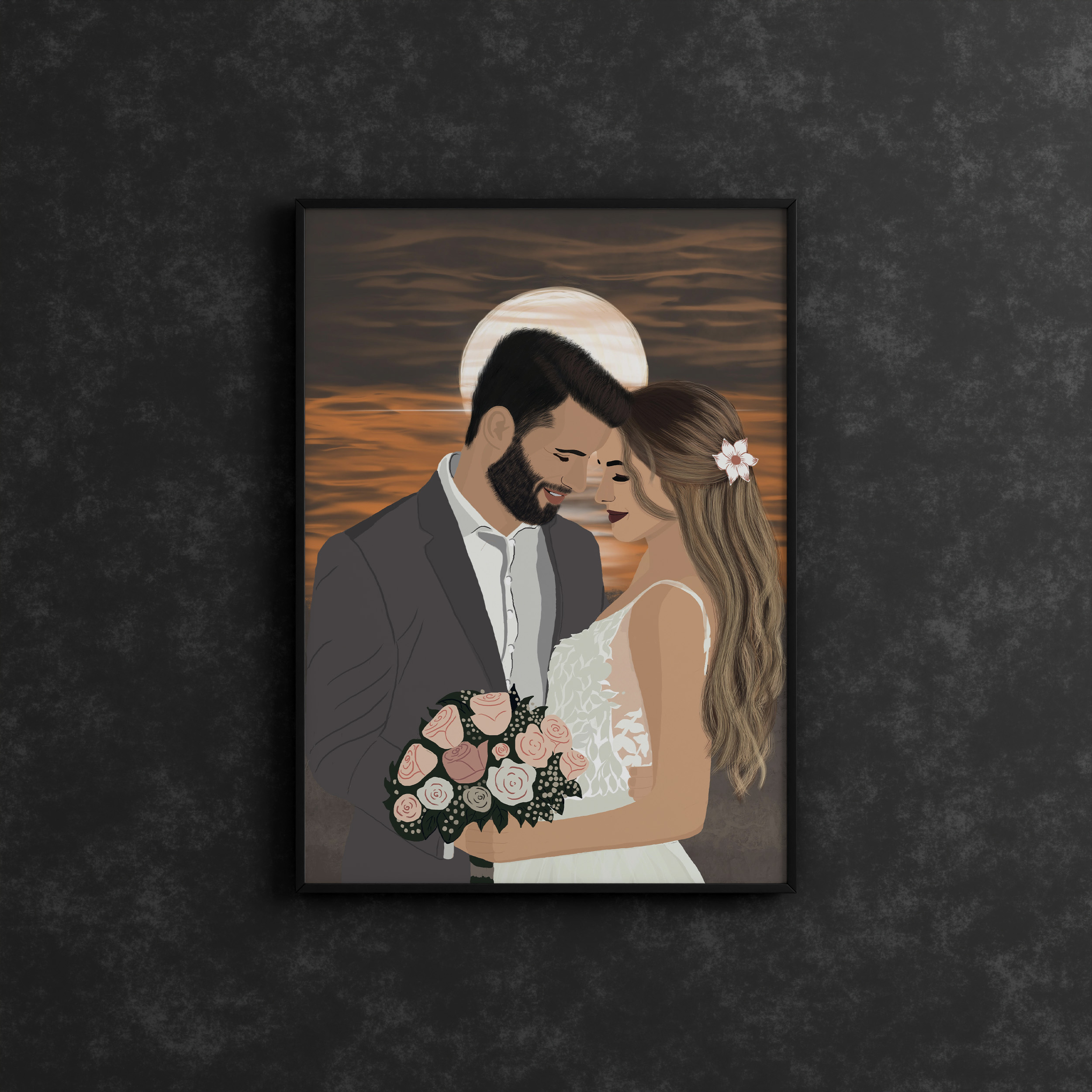 ציור דיוקן בעבודת יד ברמת פירוט גבוהה. מתאים כמתנה לכל אירוע חגיגי. זמני יצירה ממוצעים עד 7 ימי עסקים בהתאם לגודל ולמורכבות ועד 14 ימי עסקים מגיע במשלוח עד הבית בתיאום מראש.